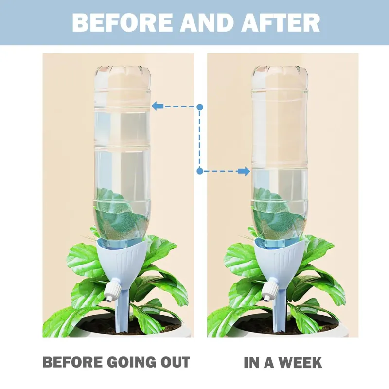 【Simple and Convenient】 Installed without any tools, just drill some holes in the bottom of the bottle or cut the tail of the bottle to keep the air flowing.Loosen the slow release control valve switch on the regulating valve according to the irrigation needs.