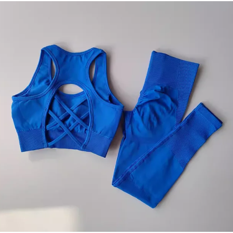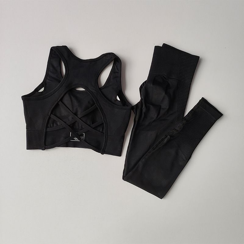 2PCS Sports Bra Women's Set Professional Fitness Tank Top Bra Shockproof Running Leggings Yoga Suit Beautiful Back Bra Clothing