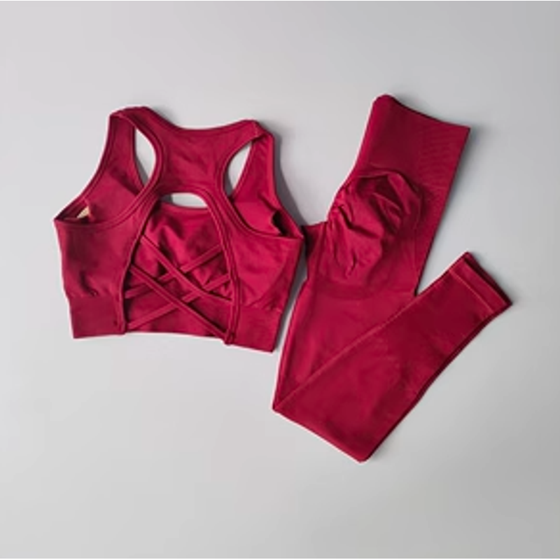 2PCS Sports Bra Women's Set Professional Fitness Tank Top Bra Shockproof Running Leggings Yoga Suit Beautiful Back Bra Clothing