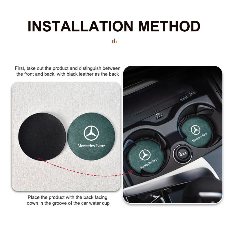 2pcs Suede Car Coaster Water Cup Bottle Holder Anti-slip Pad Mat For Mercedes Benz AMG A C E S G Class W201 W210 W108 W204 W205