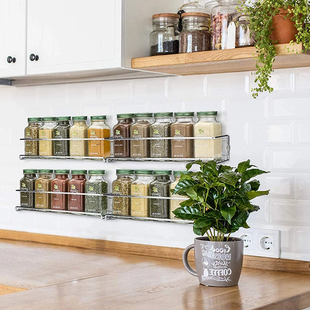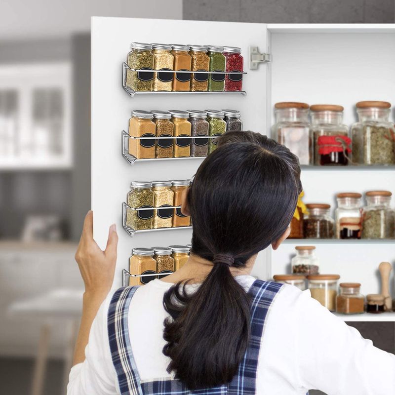 Space-Saving: Our set of hanging wire spice racks offers space-saving solutions to unclutter worktops, cabinets, and drawers and organize your jars neatly with everything in one easy to recognize and reach convenience.