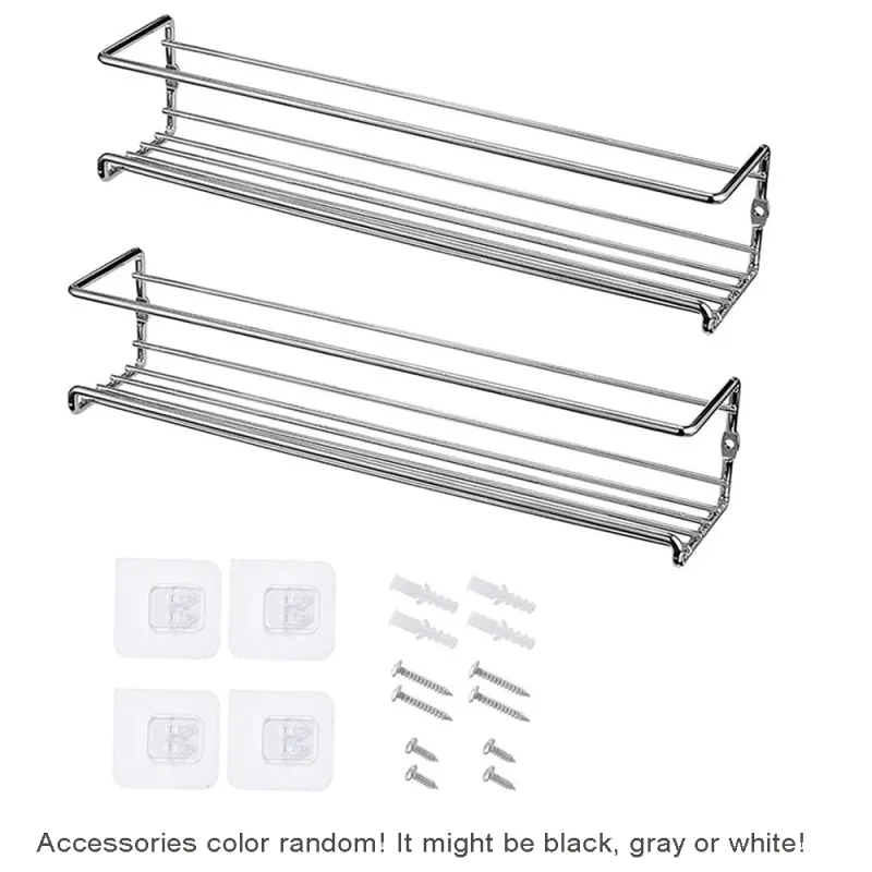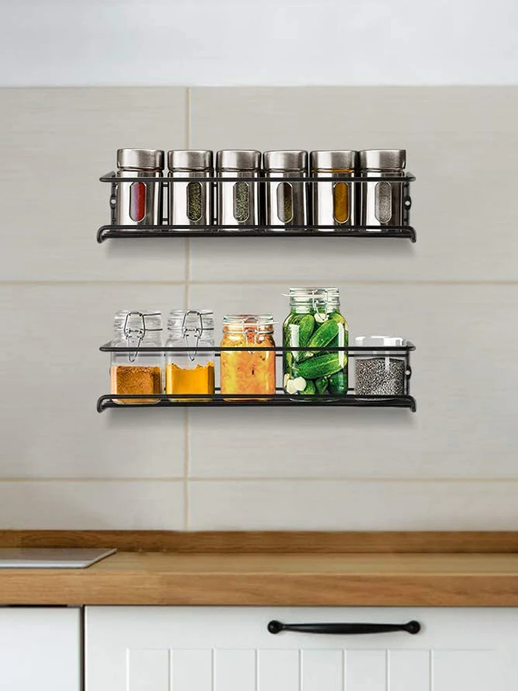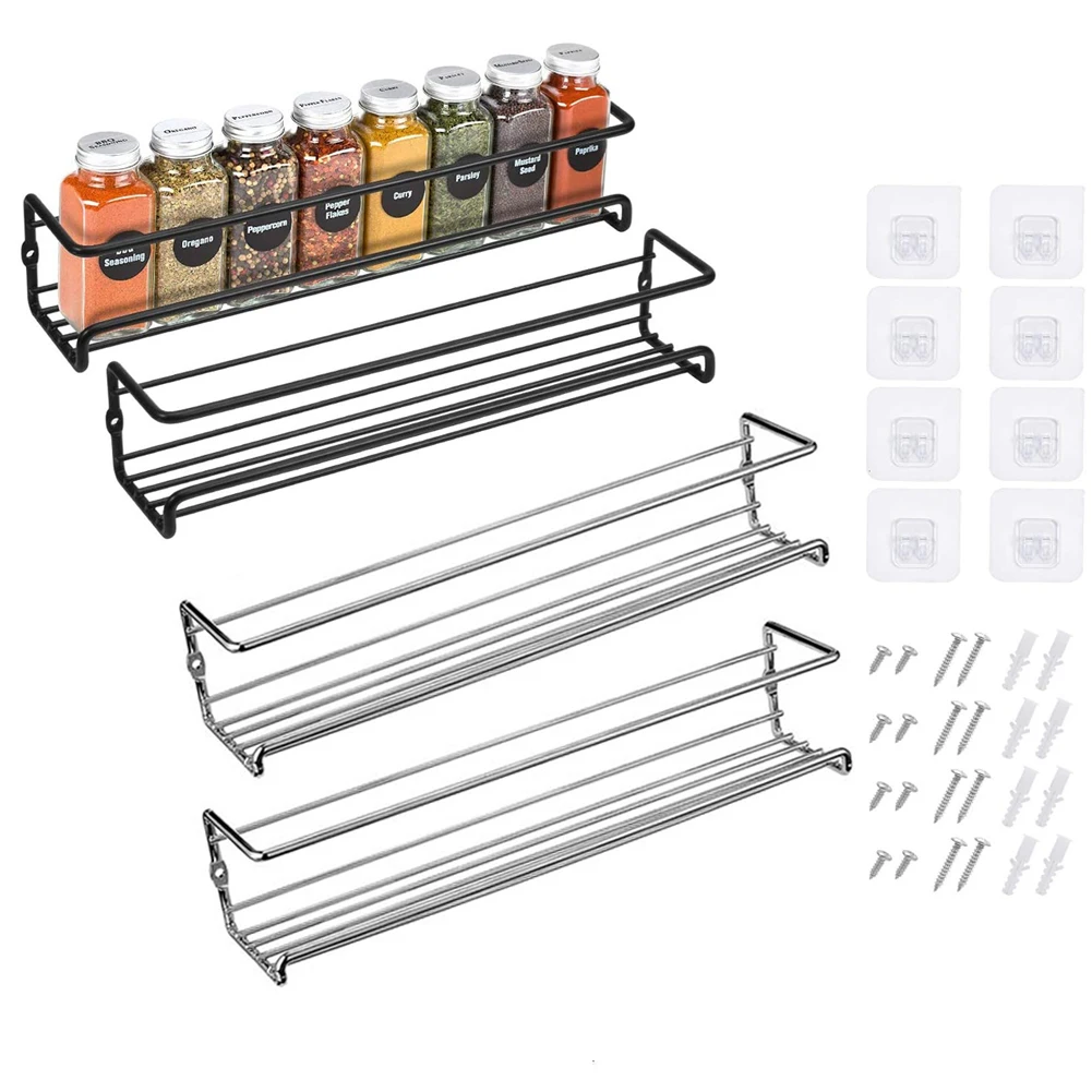 2pcs Wall Mount Spice Organizer, Metal Hanging Racks, Single Layer, Seasoning Shelf, Kitchen Shelf, Organizer Rack For Cupboard