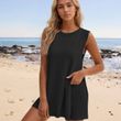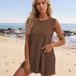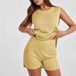 2pcs Women's Knitting Suit Summer Loose Round Neck Split Vest Top And Shorts Beach Clothing Lotus Root Color S