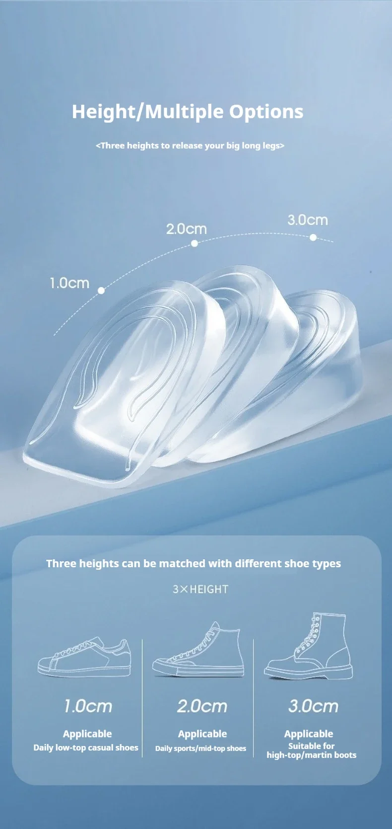 2pcs/4pcs Invisible Elastic Heel Pads Silicone Shock Absorbing Insoles Men's and Women's Arch Support Height Increasing Insoles