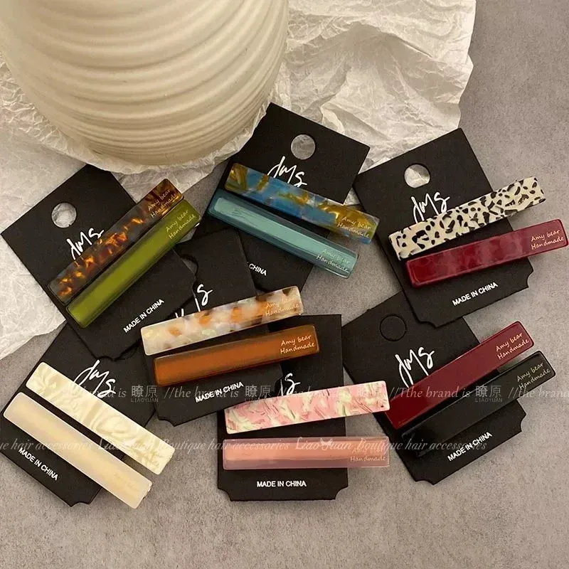 2pcs/set Acetate Hair Clips Font Geometric Hairpins Bang Side Pin Sweet Cute Simple Women Hair Accessories