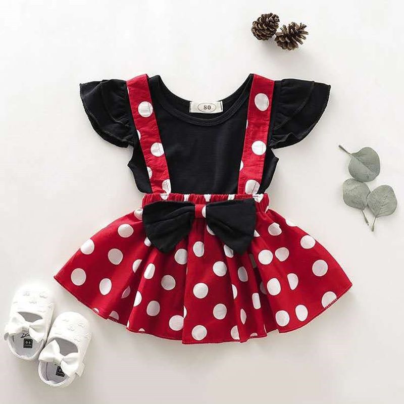 2Pcs/Set Baby Girl Dress Summer Girl Bow Polka Dot Dress Two-Piece Set Cute Girl Princess Dress Set Performance Outfit