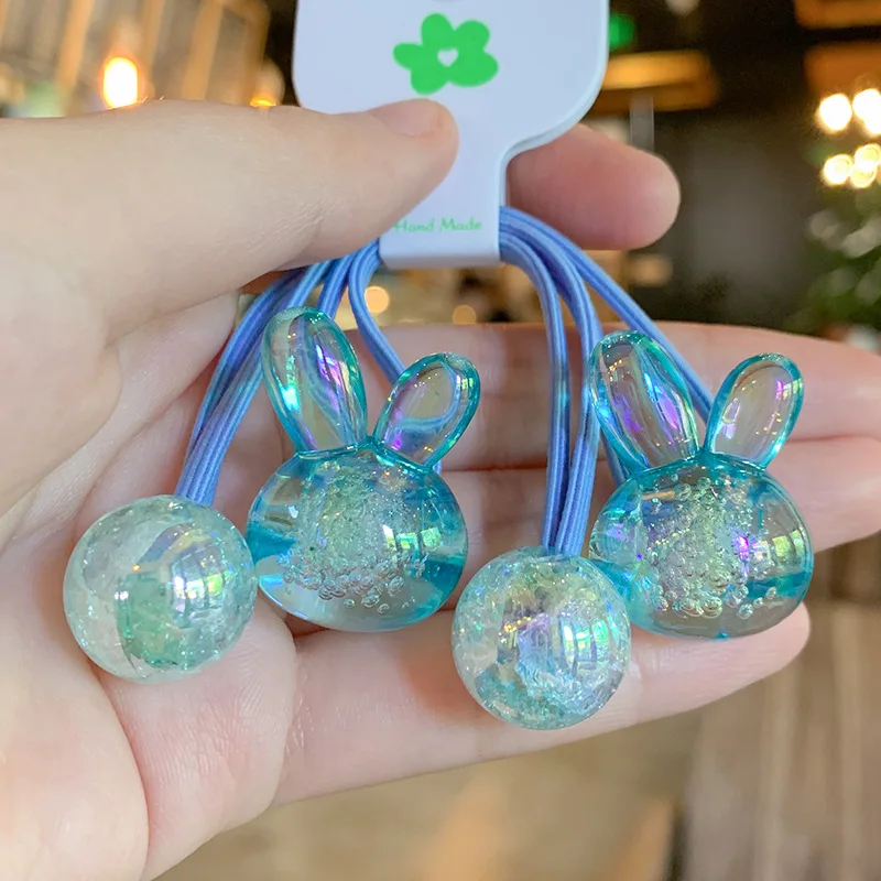 2pcs/set Cute Rabbit Hair Rubber Bands For Girls Elastic Bead Hair Rope Gum Baby Hair Ties Kid Pink Hairbands child accessories