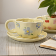 2PCS/Set High-end Coffee Cups And Saucers, High-value Ceramic Mugs, Business-style Latte Art Coffee Cups, Hand-pinched Cups