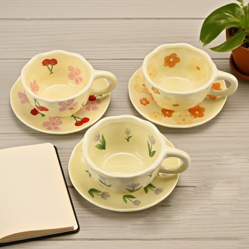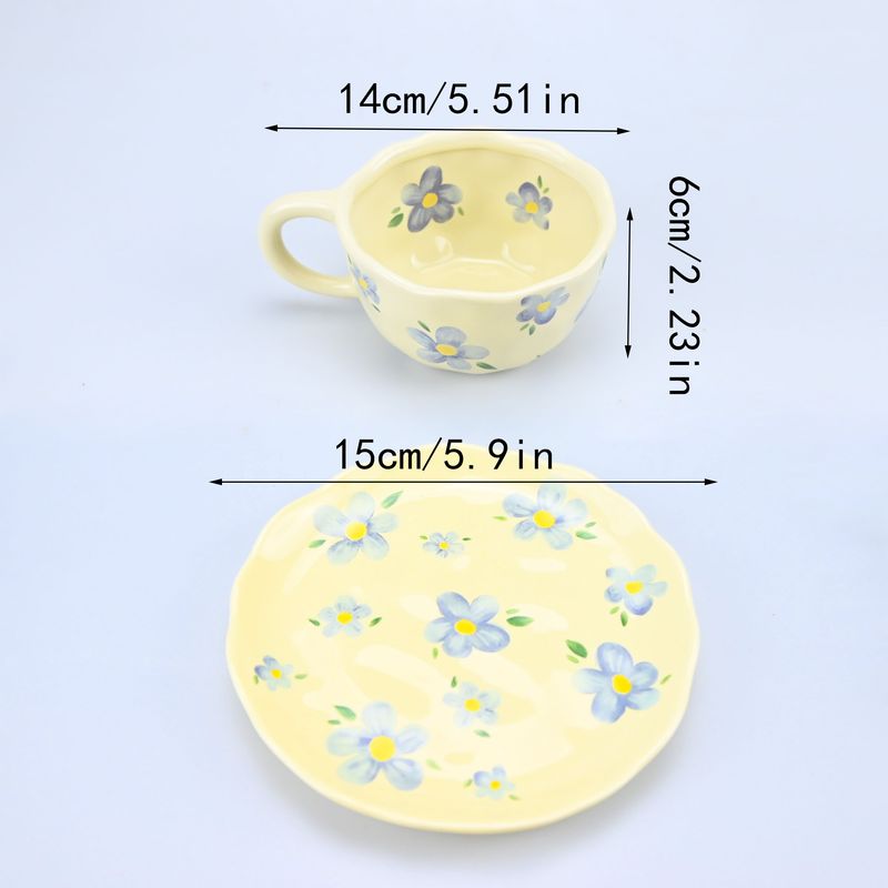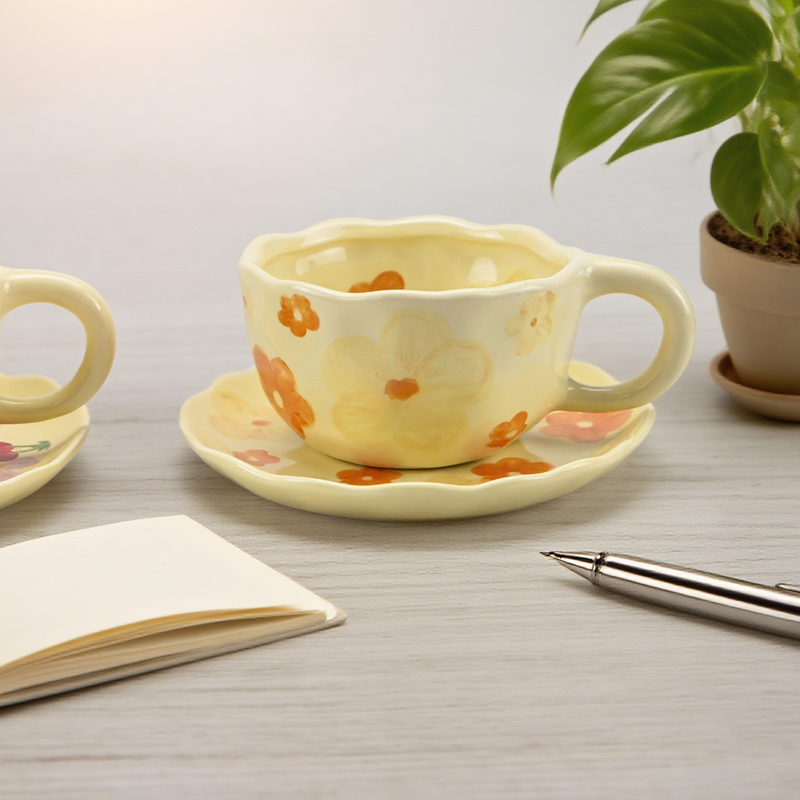 2PCS/Set High-end Coffee Cups And Saucers, High-value Ceramic Mugs, Business-style Latte Art Coffee Cups, Hand-pinched Cups