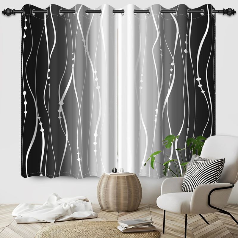 2pieces Blackout Curtains White Vertical Stripes Patterned Color Gradient Polyester the Suitable Bedroom Living Room Curtains