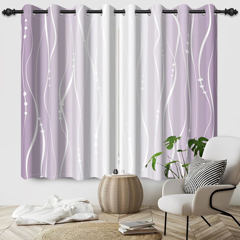 2pieces Blackout Curtains White Vertical Stripes Patterned Color Gradient Polyester the Suitable Bedroom Living Room Curtains