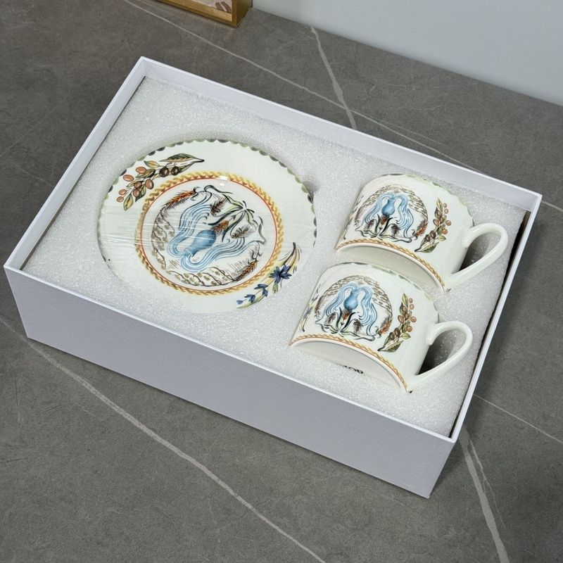 Inspired by hand drawn illustrations from the 18th century, this 250ml ceramic teacup incorporates vintage character paintings into its body. Paired with a 15.5cm diameter relief gold edged dish, the afternoon tea time quietly sublimates into an aesthetic ceremony in the art museum.