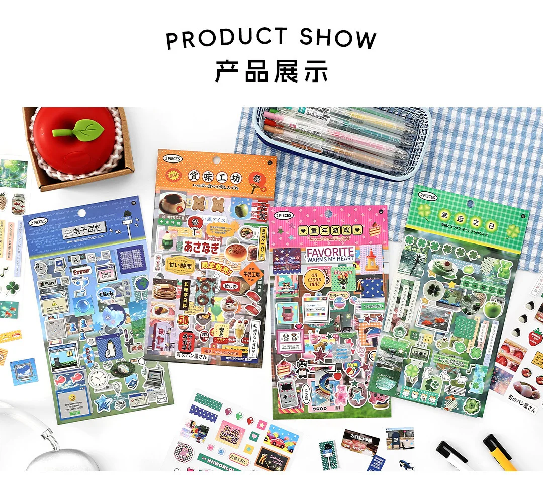 2sheets Kawaii Japanese Childhood Memories Die cut Adhesive Sticker Junk Journal Collage Decoration Scrapbook Diary Cute Sticker