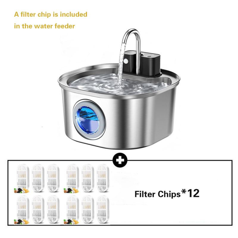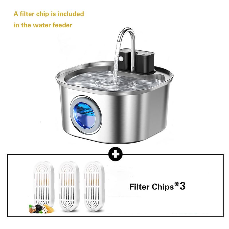 3.2L/108oz Wireless Charging Sensor Cat Water Feeder Stainless Steel Cat Dog Water Fountain Silent Water Level Window No Plug