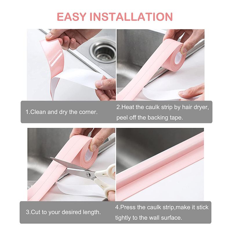 2.The bathroom sealing tape is suitable for any flat and smooth surface such as tiles, marble, glass, painted wood etc. The area to be used must be dry and the adhesive strip can be pressed onto the surface within minutes.