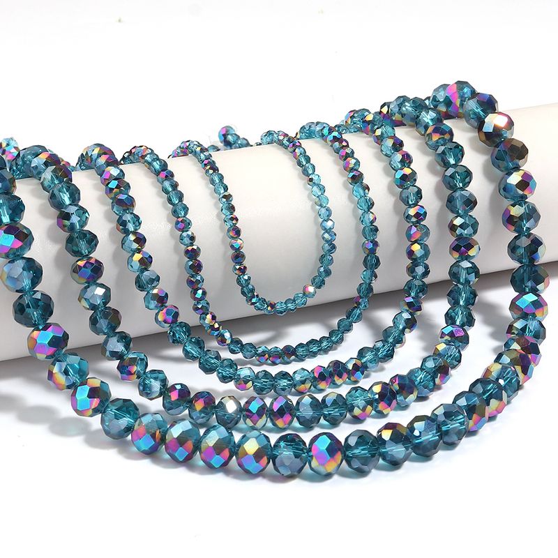 3 4 6 8 10mm Faceted Crystal Beads Peacock Blue Glass Abacus Loose Beads For DIY Jewelry Making Bracelets Necklace Accessories