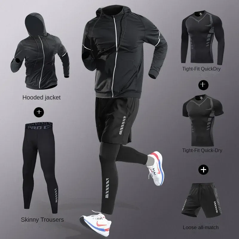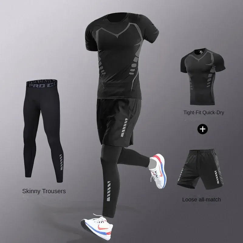 3-7Pcs Men's Ice Fiber Quick-Dry Running Fitness Full Set/Suit Tracksuit For Marathon, Training Cycling,Jogging,Gym, sweatpants