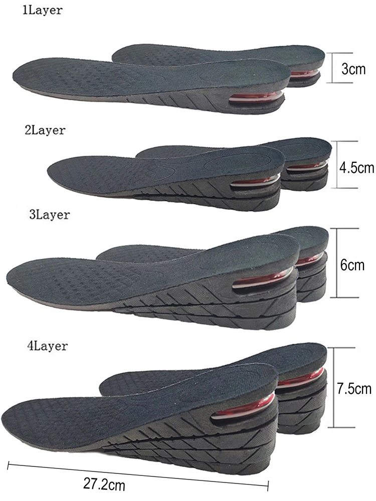 3-9cm Height Increase Insole With Air Cushion Height Lift Taller Support Absorbant Foot Pad Adjustable Cut Shoe Heel Insert