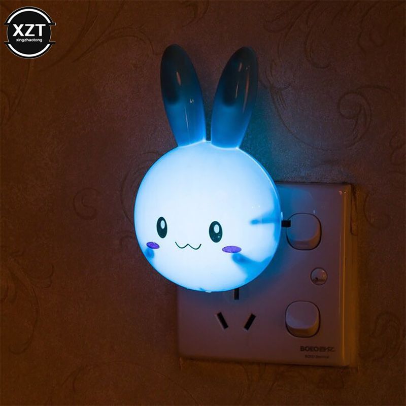 3 Colors LED Cartoon Rabbit Night Lamp Switch ON/OFF Wall Light AC 220V US Plug Bedside Lamp Decor For Children Kids Gifts