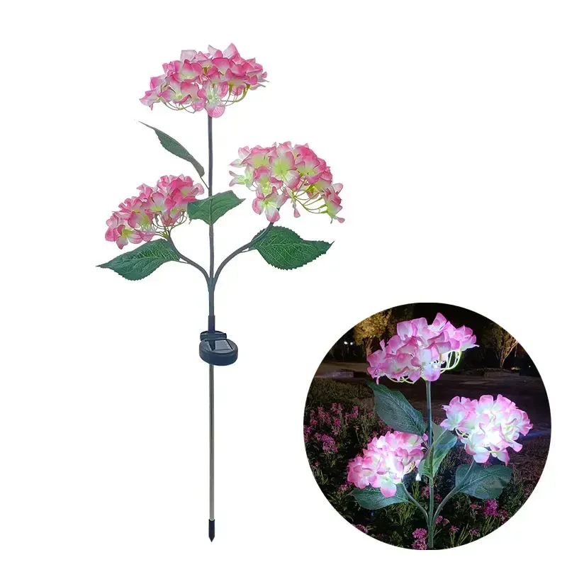 3 Heads Hydrangea Solar Lawn Lamp Garden Summer Wedding Party Holiday Outdoor Patio Yard Decoration Artificial Flower Lighting