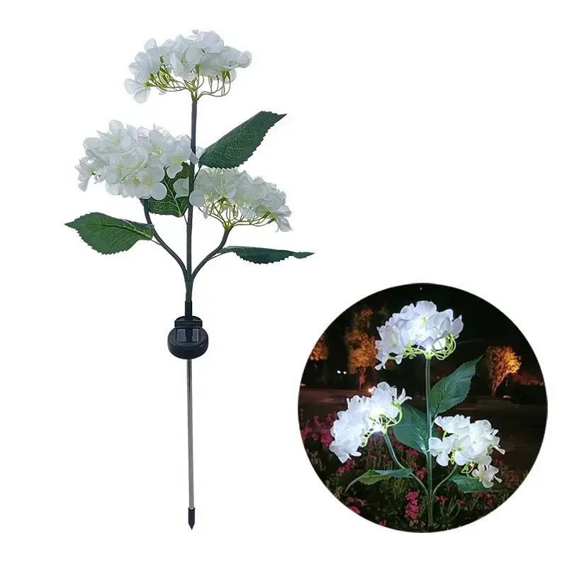 3 Heads Hydrangea Solar Lawn Lamp Garden Summer Wedding Party Holiday Outdoor Patio Yard Decoration Artificial Flower Lighting