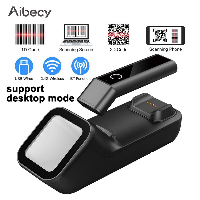 3-in-1 Barcode Scanner Handheld 1D/2D/QR Bar Code Reader BT&2.4G Wireless&USB Wired Connection with Charging&Scanning Base