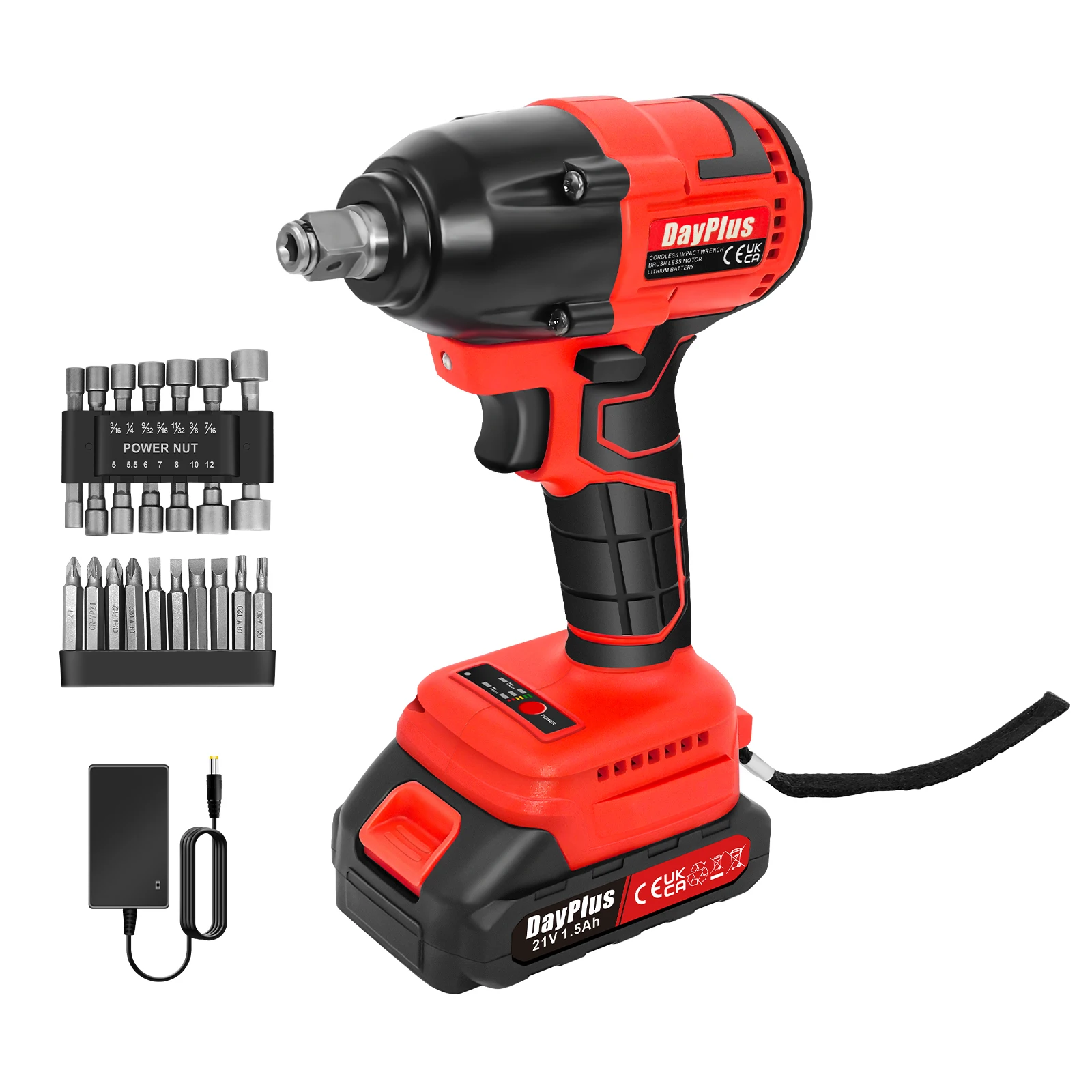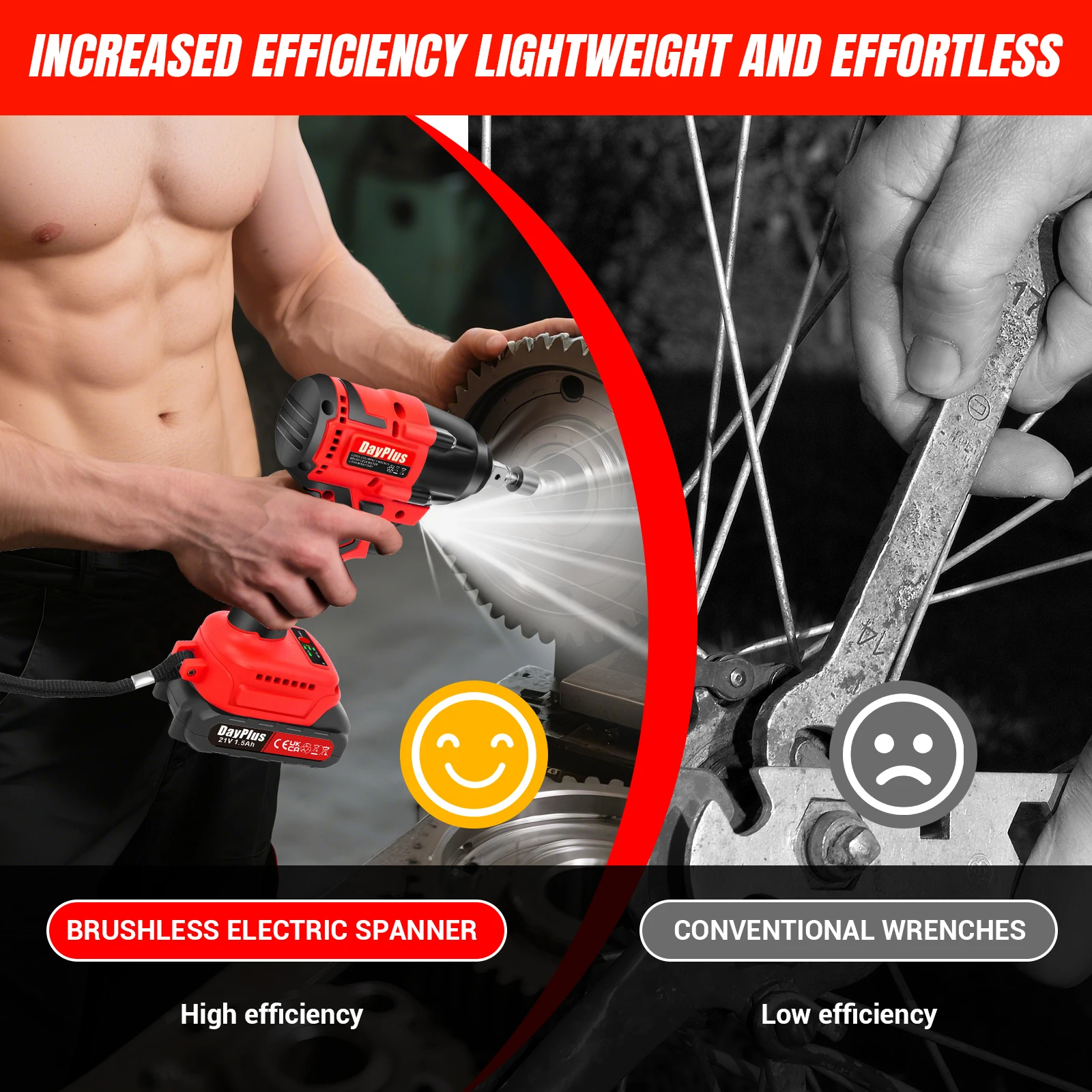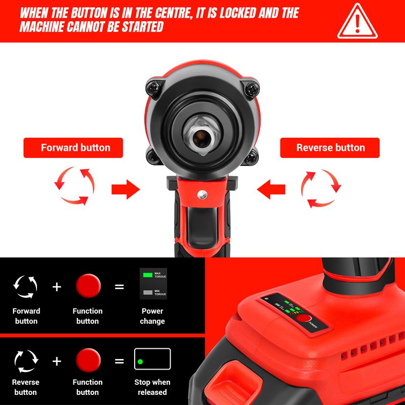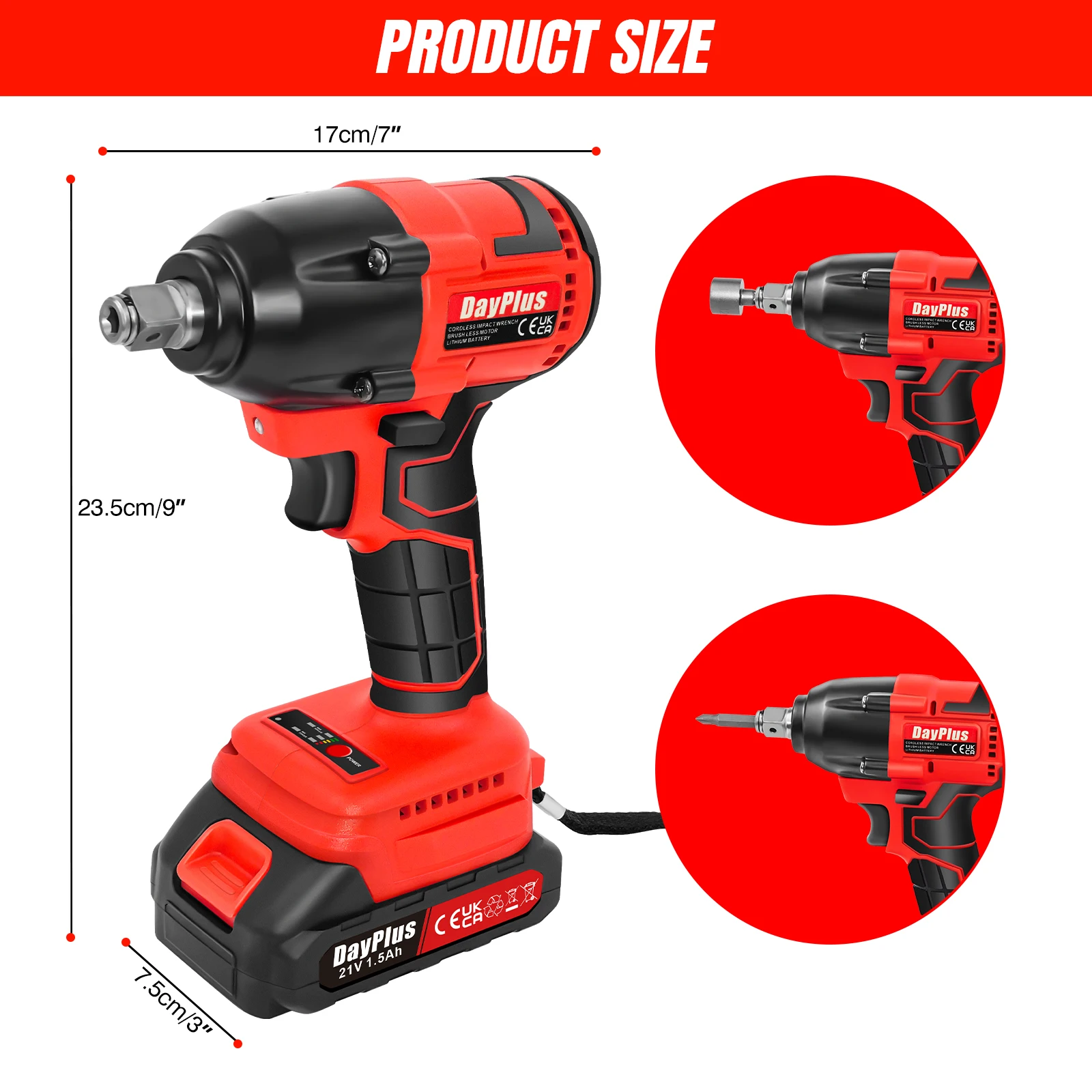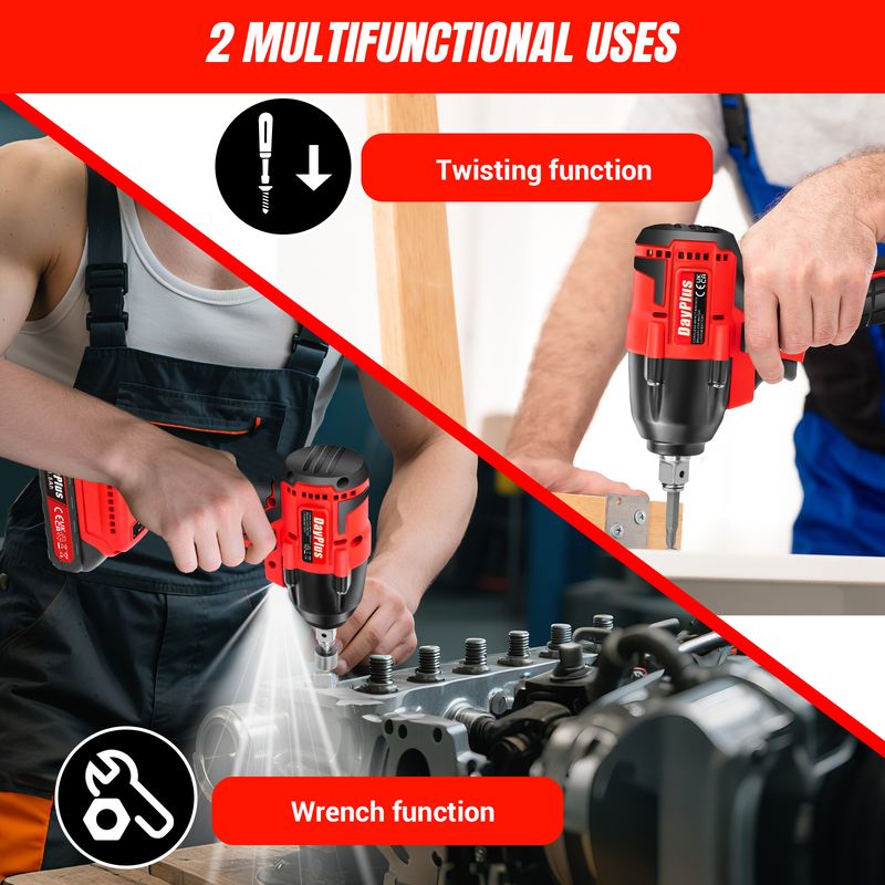 【Multi-functional Application】1/2 inch impact spanner can handle most of the maintenance work in daily life, the spanner function can easily tighten most of the nuts, suitable for removing and replacing car tyres; the electric drill function can easily drill holes, suitable for drilling holes in wood, tiles and metal.