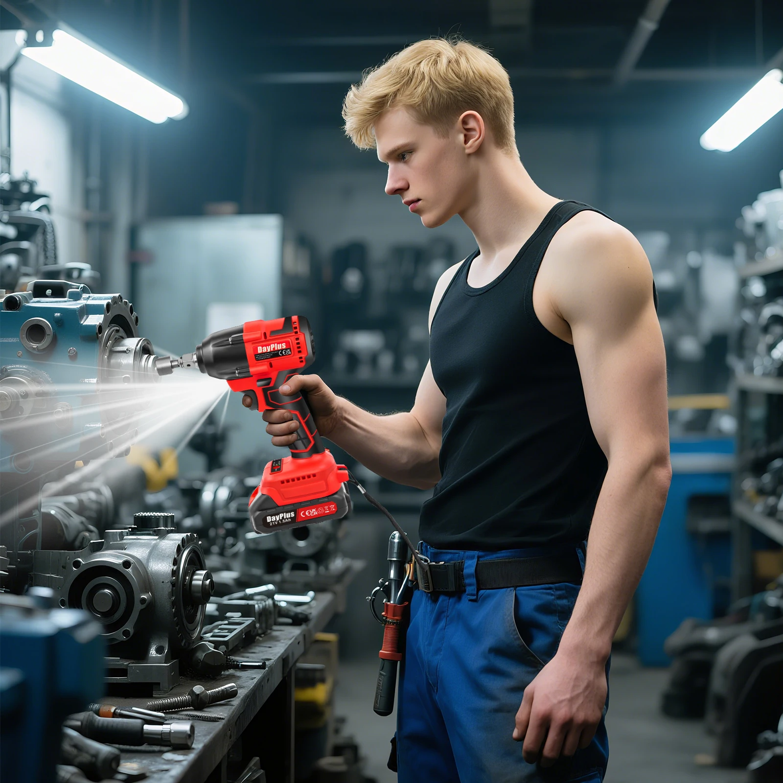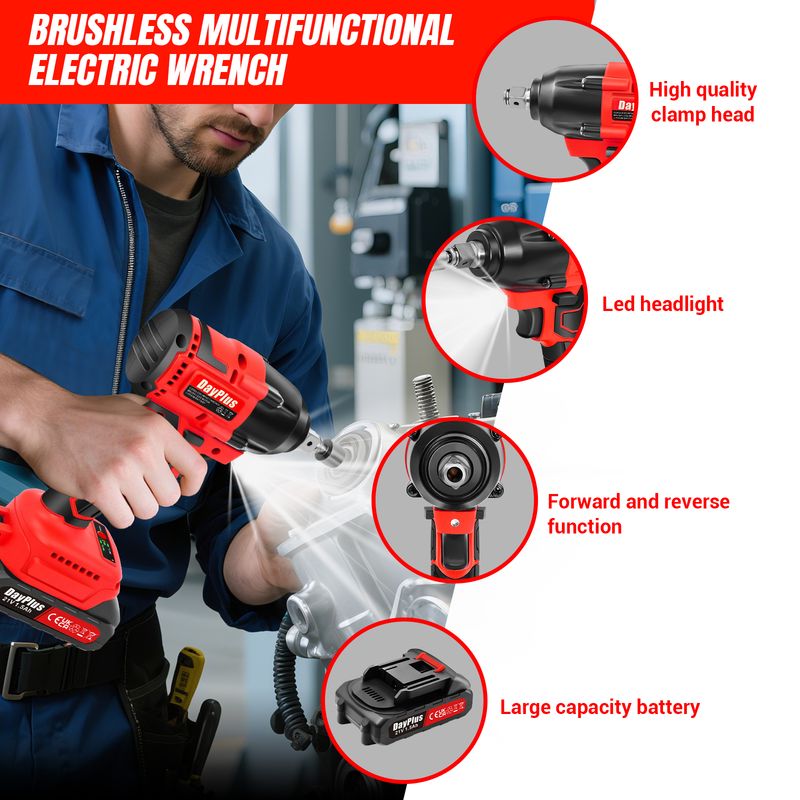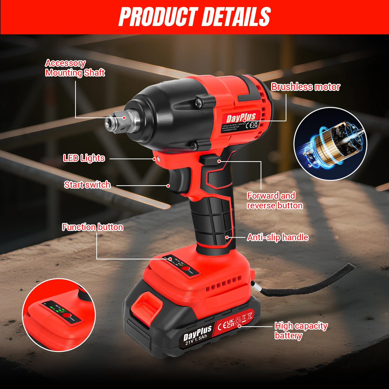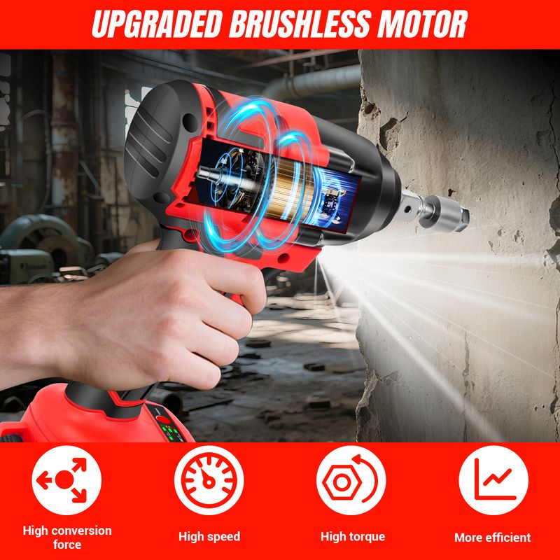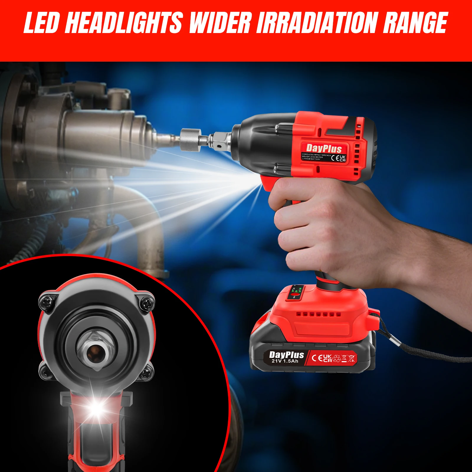 【Brushless motor and LED light】Our impact wrench is equipped with a brushless motor, which can improve efficiency and extend service life. The built-in LED lights allow you to easily work in narrow, deep, and dark environments.
