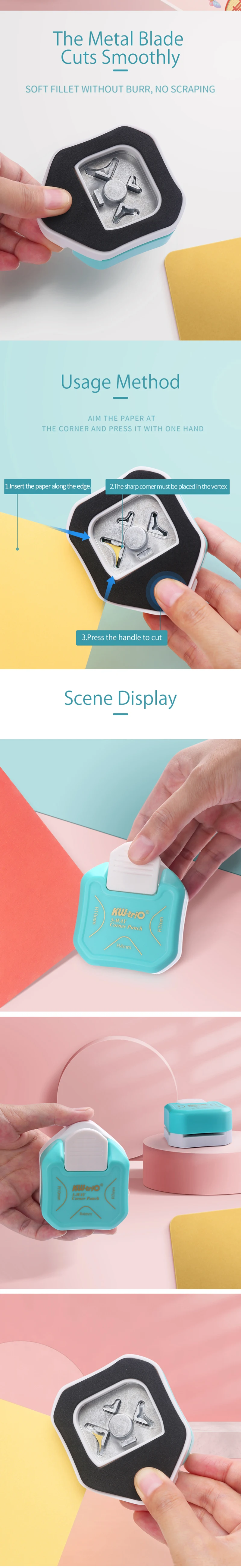 3-in-1 Corner Rounder border punches for scrapbooking diy Mini Corner Cutter R4/R7/R10mm Circle Trimmer Punch Office Supplies