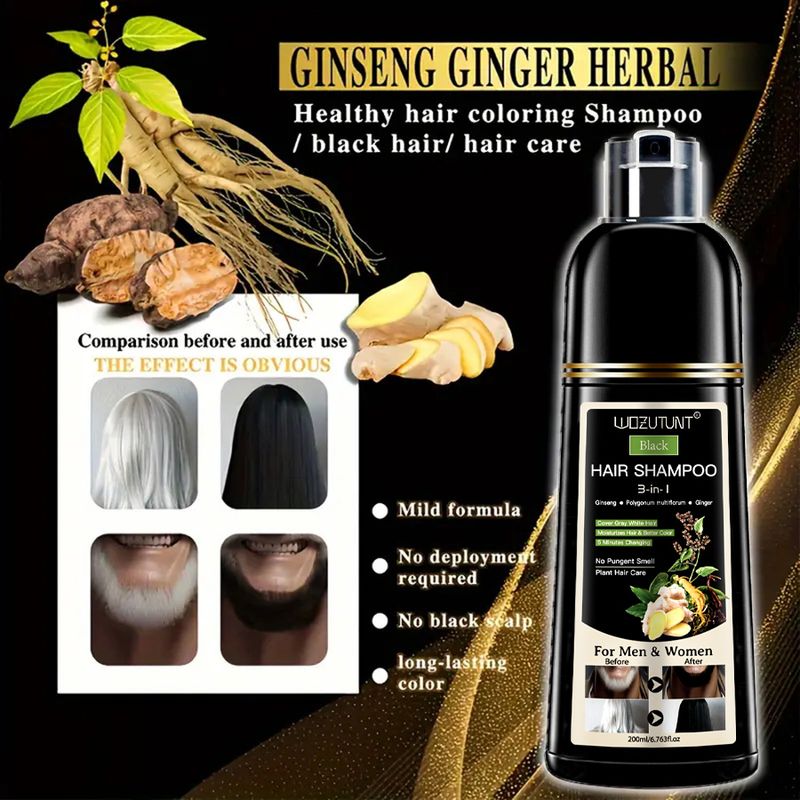 3 In 1 Dye Shampoo Instant Gray White Hair Coverage Hair Color Shampoo 5 Minutes Change Long Lasting Natural Colored Easy To Use