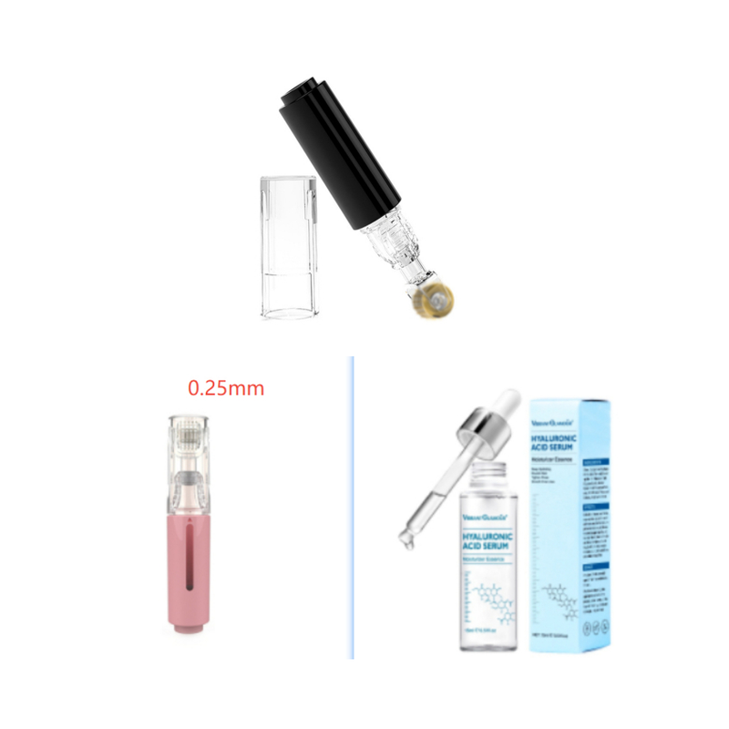 1. The Hydration Roller is a 2-in-1 system. As you roll the microneedle roller over your skin, it simultaneously uses your favorite serum.