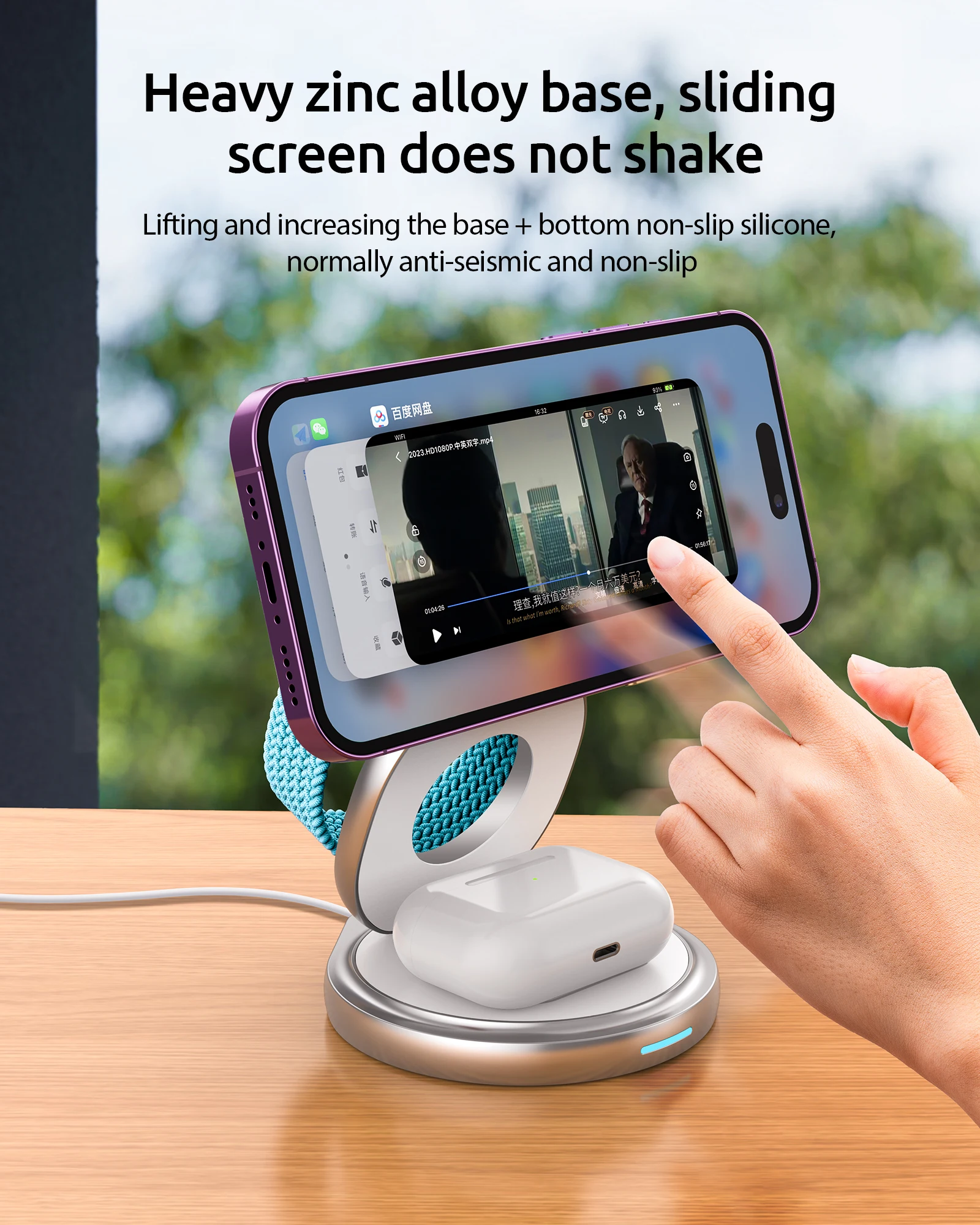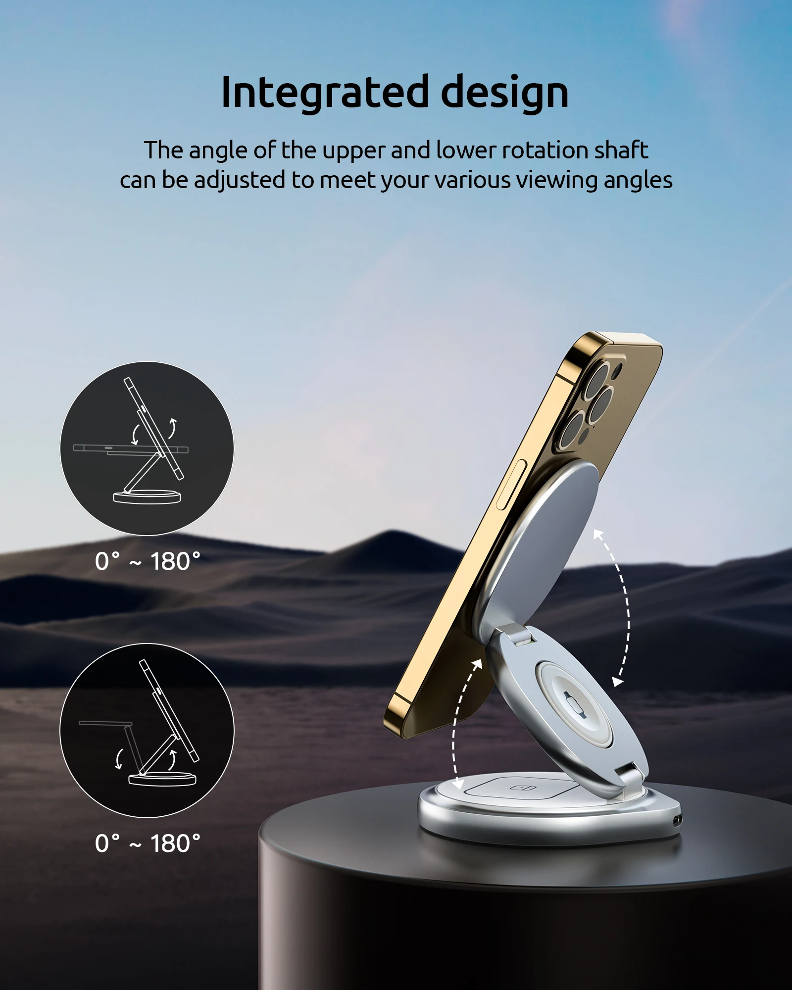 • 【360° Rotating & Portable Aluminum Alloy Charging Stand for Apple】Unlike other wireless charging stands, the plastic material of the charging station is upgraded to aluminum alloy. This enables the charger station to have better heat dissipation when charging. We also upgraded the base to allow 360° rotation. It allows you to easily turn your iphone without the hassle of moving the entire charging device.