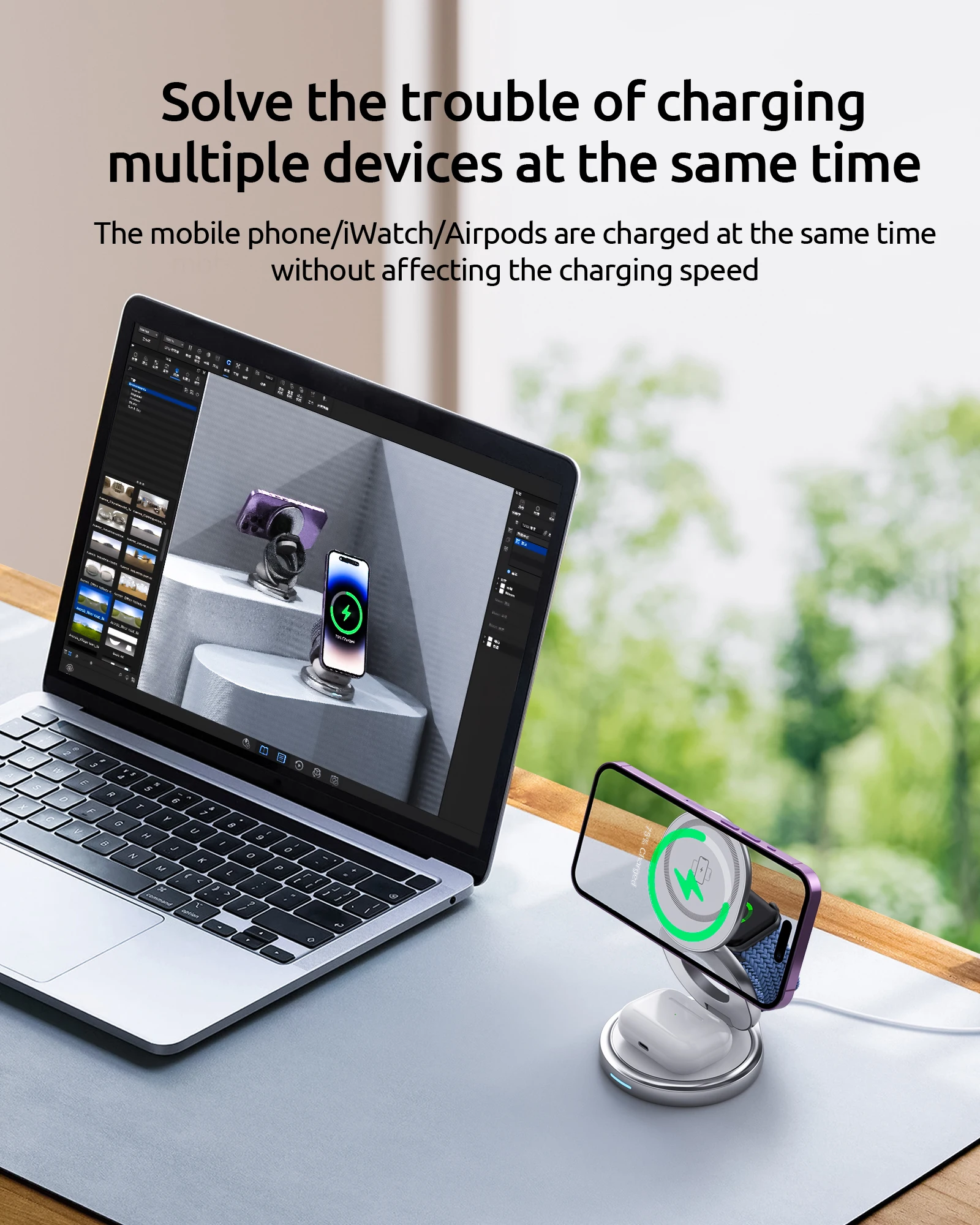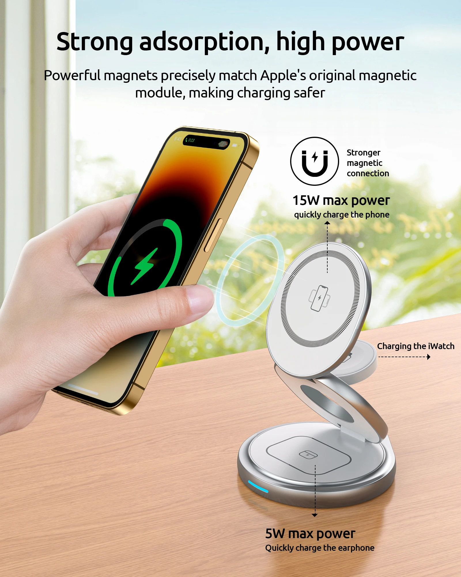 • 【Highly Compatible Multiple Devices】Compatible with iPhone 15/14/13/12 Pro Max Plus Mini; compatible with Apple Watch Ultra/Ultra2/9/8/7/6/5/4/3/2/SE; compatible with AirPods 3/2/PRO. Built-in high-quality magnets to hold the iPhone precisely in the best charging position and lock automatically. Built-in 3-coil-wide charging area to bring you a fast and stable wireless charging experience. (Please work without cases, or use mag-safe/magnetic cases.).