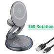 3 in 1 Magnetic 360 Rotate Metal Wireless Charger Stand Pad For iPhone 15 14 13 12 Apple Watch 9 8 Airpods Fast Charging Station