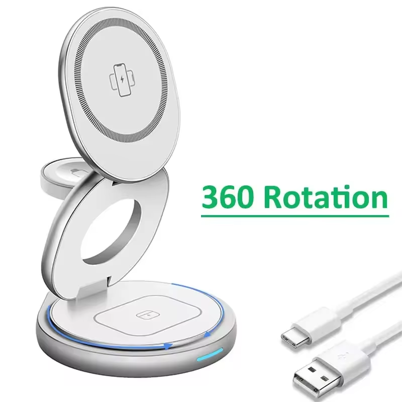 【Foldable Magsafe Travel Charger】 TechThrill travel charging station is specially designed for Apple devices. Compact size, weighing only 0.47 pounds. And we will also give you a beautiful storage box as a gift. All charging devices can be perfectly positioned when traveling. Say goodbye to messy charging cables. The Mag-Safe charger can hold your iphone horizontally and vertically, or in any directions. The anti-slip design on the bottom makes charging safer.