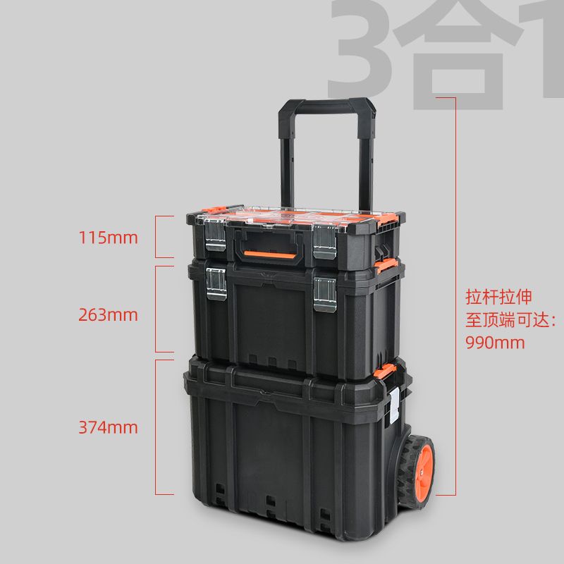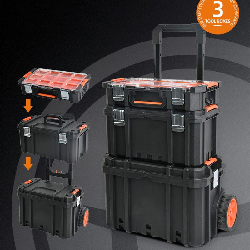 3 in 1 Tool Trolley Toolbox With Professional Wheels Combination Organizer Cabinet Storage Suitcase Case Plastic Multifunction