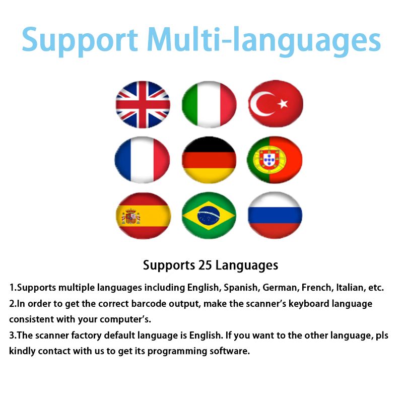 2.Support 25 countries language keyboard(1.In order to get the correct output, pls make scanner's keyboard language the same as your computer's .