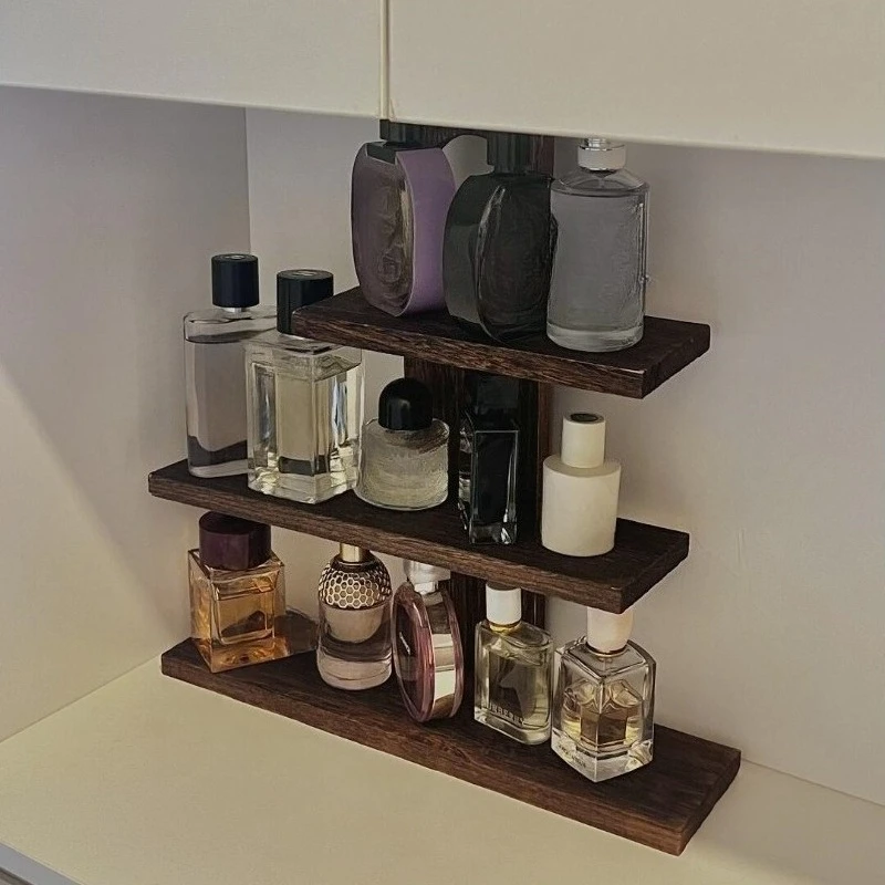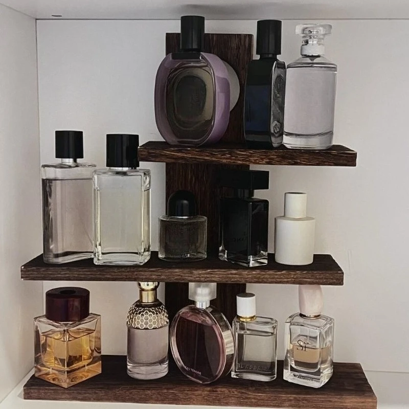 3 layer Perfume Display Stand Desktop Vintage Real Wood Multi-layer Incense Storage Cosmetic Organizer Cup Holder Home Decor