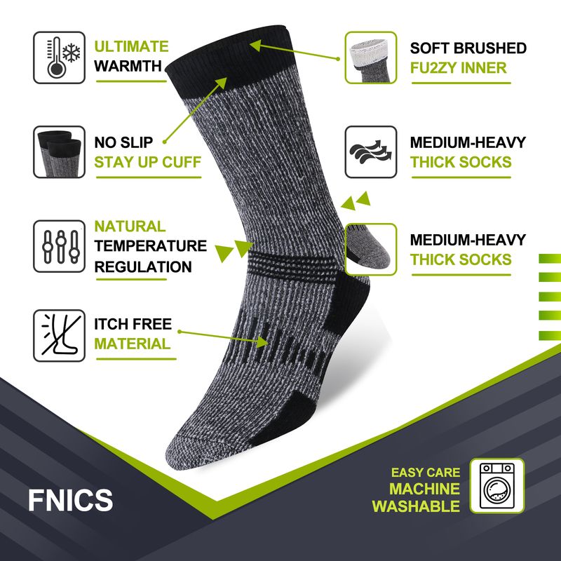 3 Pairs Men Women Merino Wool Crew Socks Thickened Thermal and Warm Socks for Winter Work Outdoor Hiking Running Sports Large
