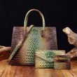 3 Pcs Crocodile Pattern Handbag & Purses Set, Multi-functional Vintage Top Handle Crossbody Bag & Business Clutch Bag & Card Coi