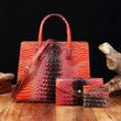3 Pcs Crocodile Pattern Handbag & Purses Set, Multi-functional Vintage Top Handle Crossbody Bag & Business Clutch Bag & Card Coi