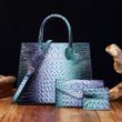 3 Pcs Crocodile Pattern Handbag & Purses Set, Multi-functional Vintage Top Handle Crossbody Bag & Business Clutch Bag & Card Coi