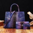 3 Pcs Crocodile Pattern Handbag & Purses Set, Multi-functional Vintage Top Handle Crossbody Bag & Business Clutch Bag & Card Coi