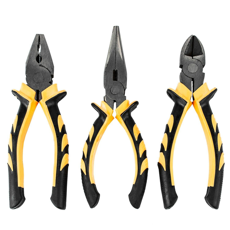 This 3 piece pliers set is the perfect addition to any tool set around your home or at work. The tempered carbon steel and nickel coat provides an extra protection and performance making them suitable for any DIY project.