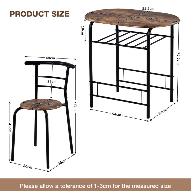 Sturdy and Durable: This 3 piece dining table set features solid MDF and covered with Waterproof PVC, built with metal frames and spraied anti-rust powder, ensuring the exercent stability and dutability for long time use. The table weight capacity: 70 lbs ; the chair capacity: 220lbs/PC; The Chairs are designed with a curved backrest fitting to human spine, offering a great comfort when taking a rest.