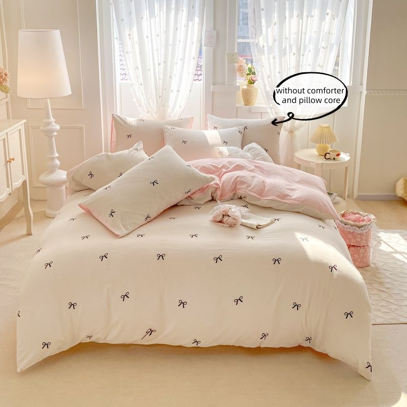 3 Piece Sheet Set pink bowknot embroidery duvet cover Set , comfortable Bedding Set Bedspread for All Season