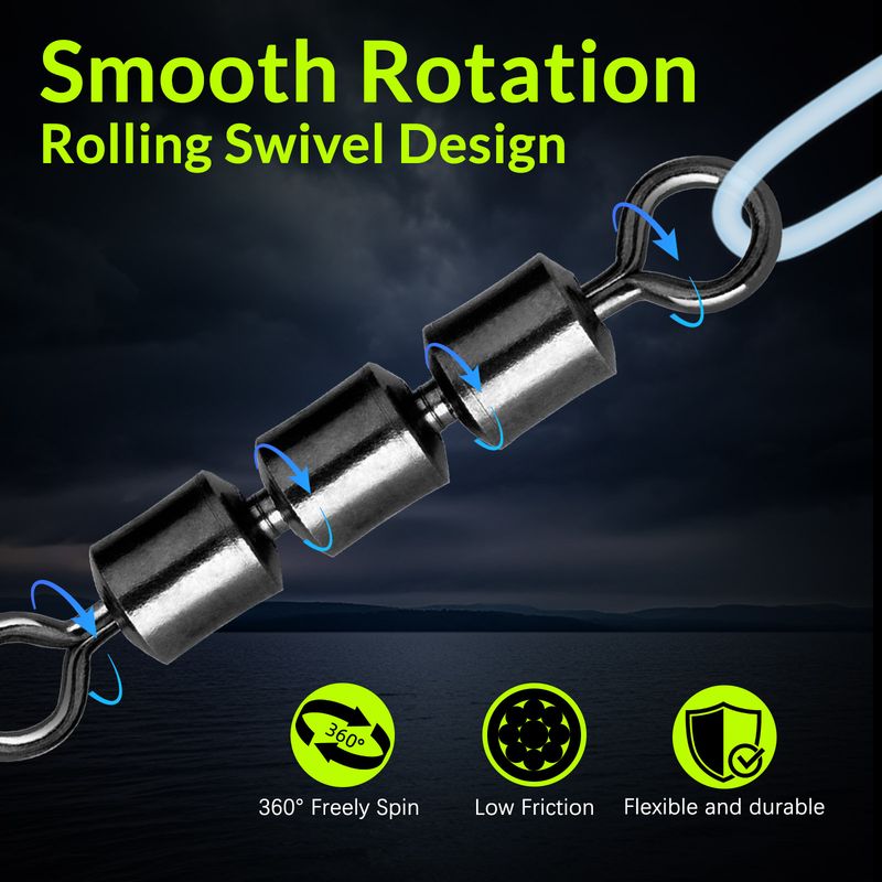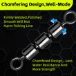 To reduce wear to fishing line, the surface of the 3 rolling barrel swivels is polished. Thank to the smooth surface, when thrown into the water, the swivel will receive less resistance and not disturb the fish,with smoothly polishing ring, it will not cut fishing line.