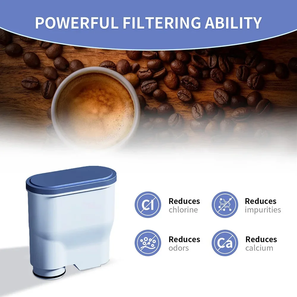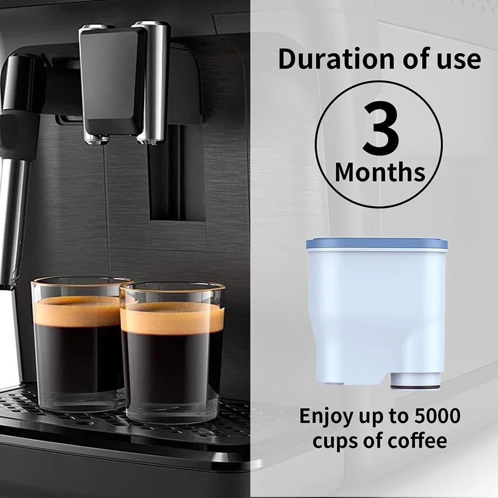 • No limescale removal: you do not need to descale the coffee machine. This coffee machine filter prevents limescale deposits by replacing the calcium and magnesium ions contained in the water. Extending the maintenance interval of your coffee machine to 3 months also reduces heavy metals and other potentially harmful contaminants in the water tested by a third party laboratory.