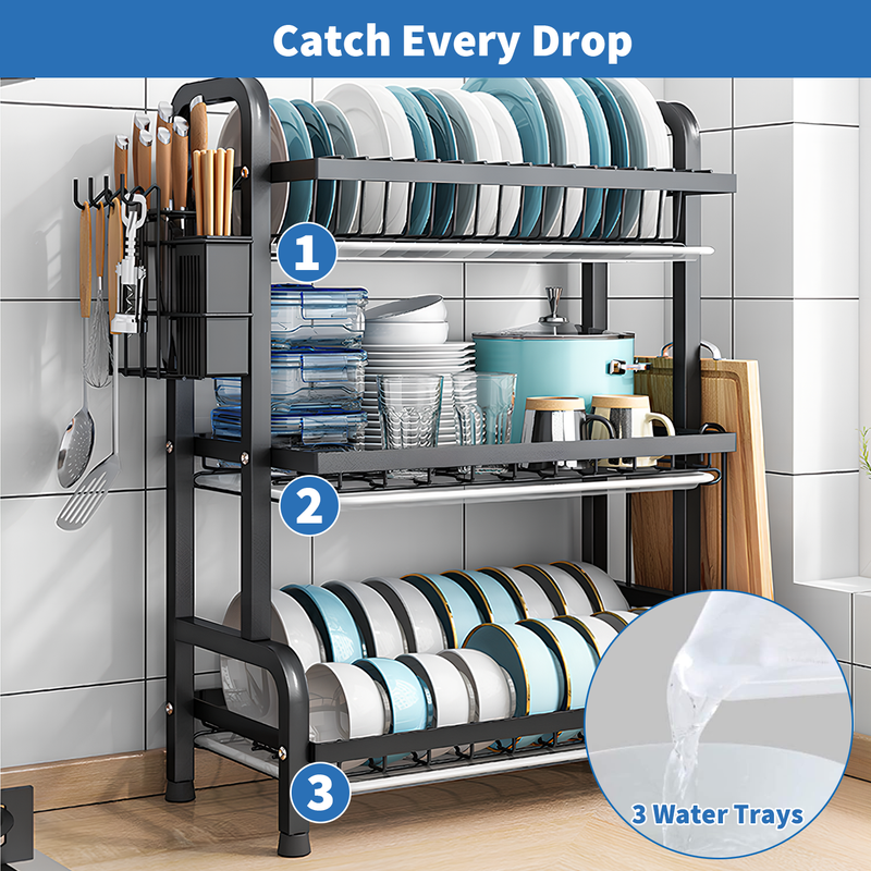 Kitchen Drainer features a three-tier design that meets the basic needs of your family.