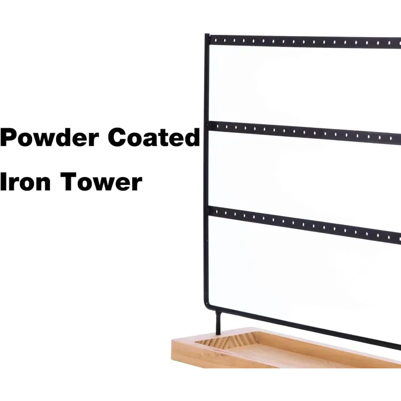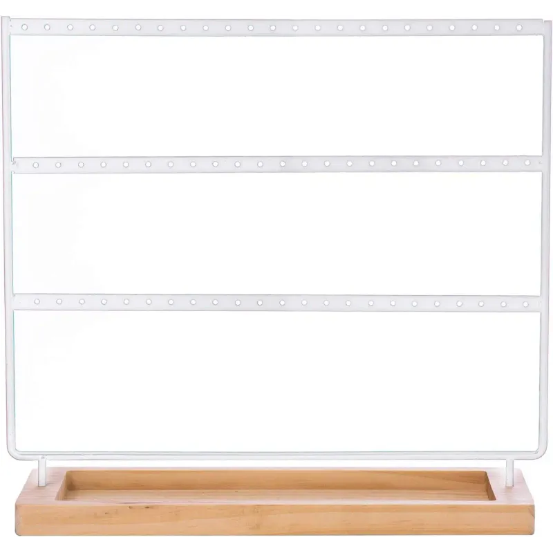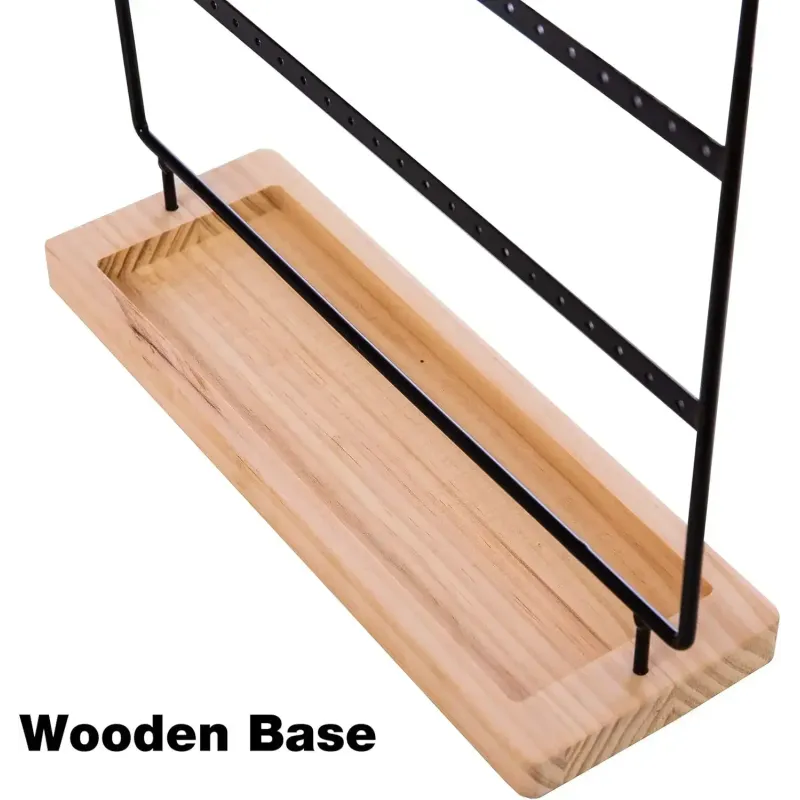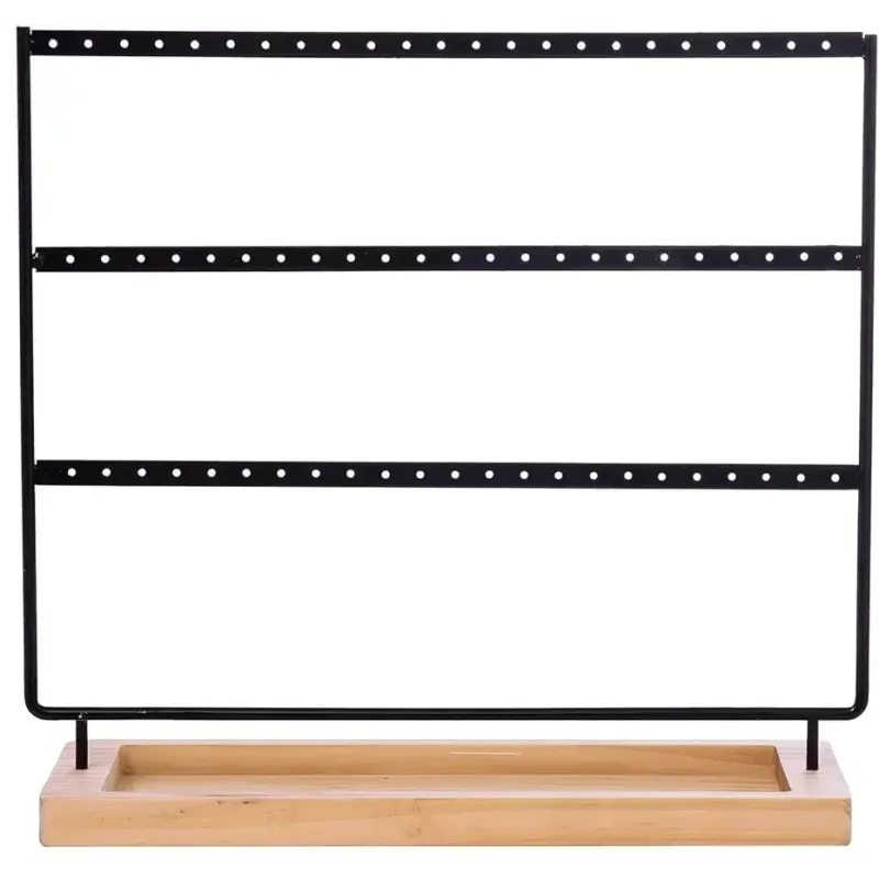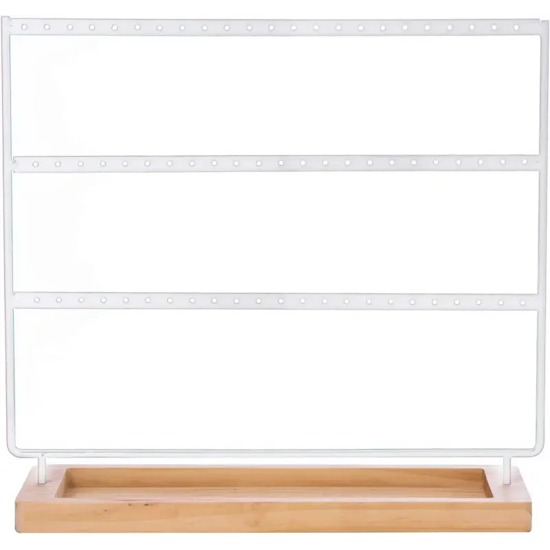 3-Tier Earring Holder Stand 69 Holes Wooden Jewelry Organizer Display with Storage Tray for Desktop Earring & Bracelet Organizer